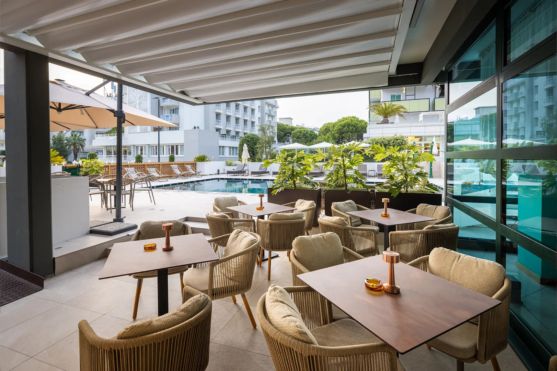Soggiornando all'Hotel Concordia di Bibione, potrete consumare il vostro pranzo nella nuovissima terrazza e in piscina.