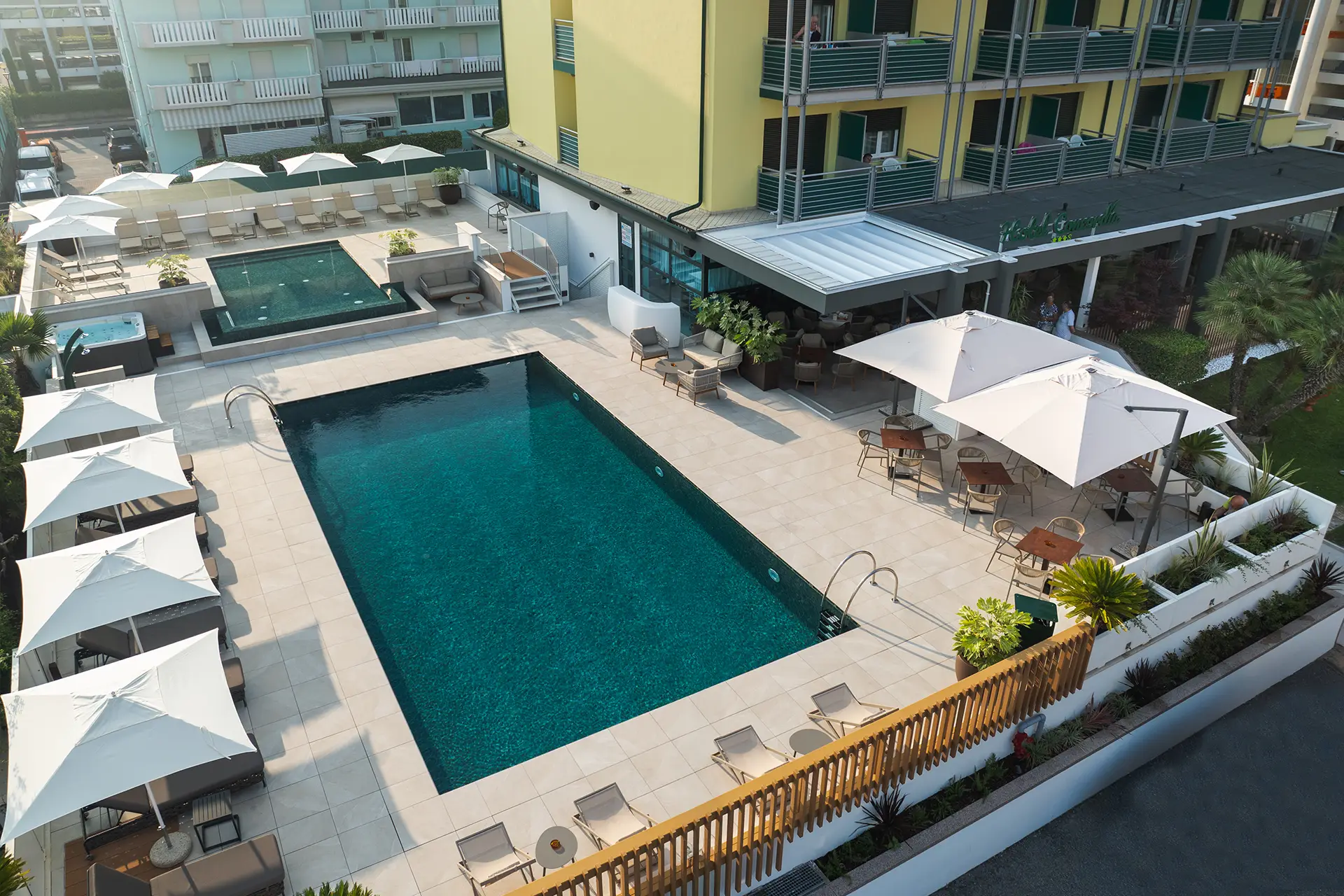 Abbiamo rinnovato i nostri spazi per offrirti un’esperienza ancora più speciale: pranzo à la carte direttamente a bordo piscina, per gustare i sapori del territorio senza rinunciare al relax; terrazza e bar completamente ristrutturati, nuovi ambienti eleganti e accoglienti, ideali per un aperitivo al tramonto; tanti piccoli comfort pensati per la tua vacanza in famiglia, con ancora più attenzione a chi viaggia con bambini.